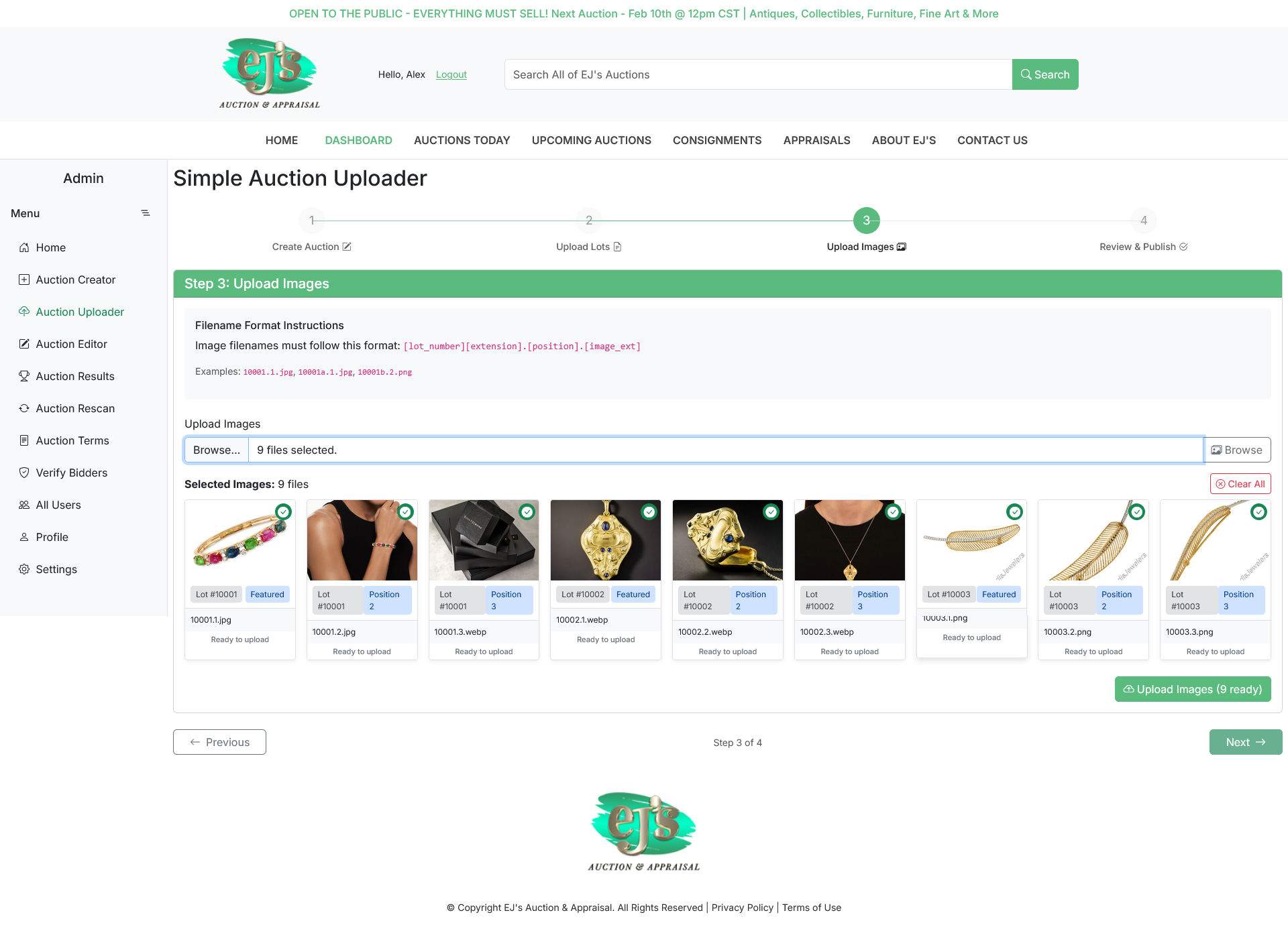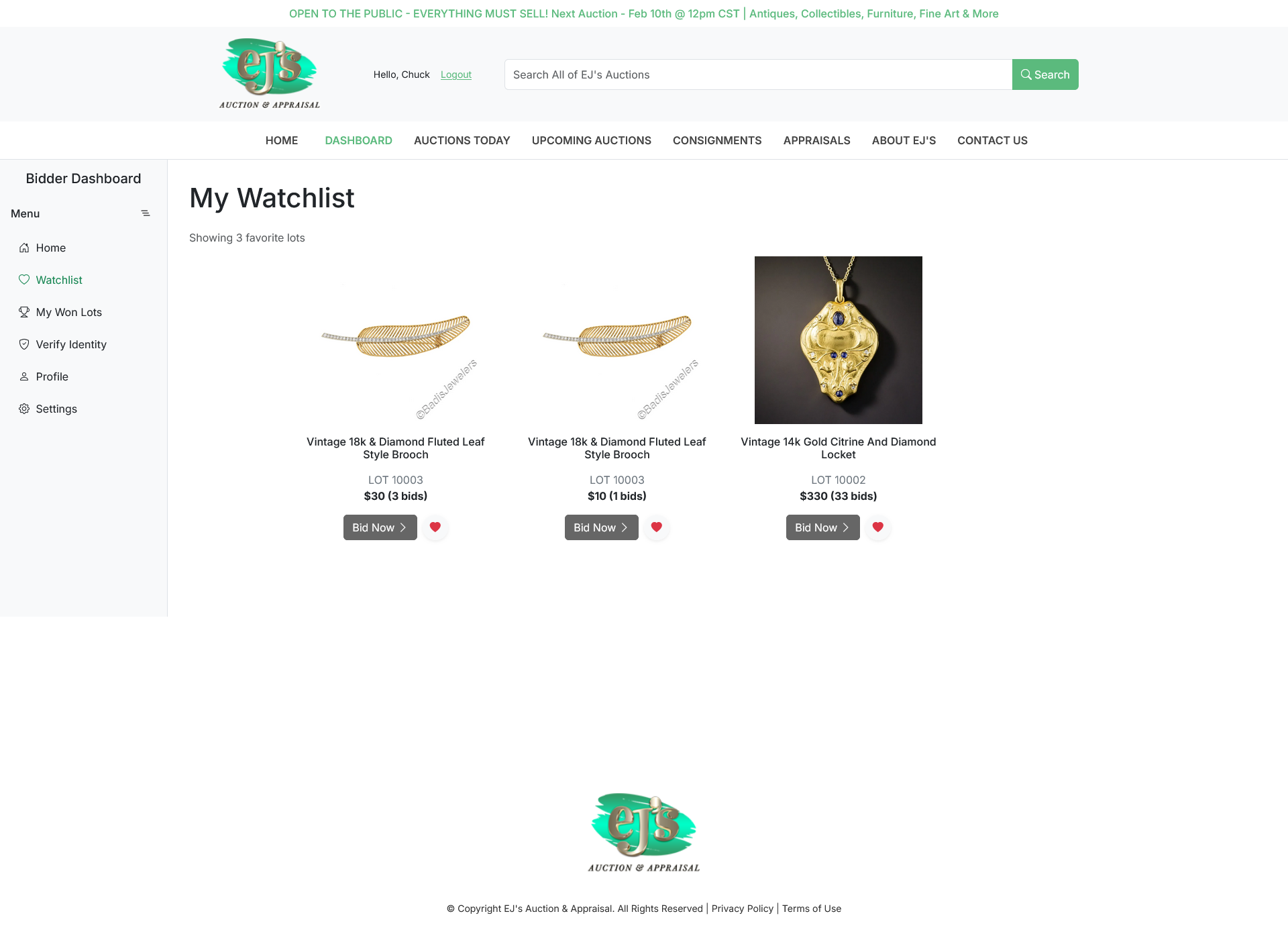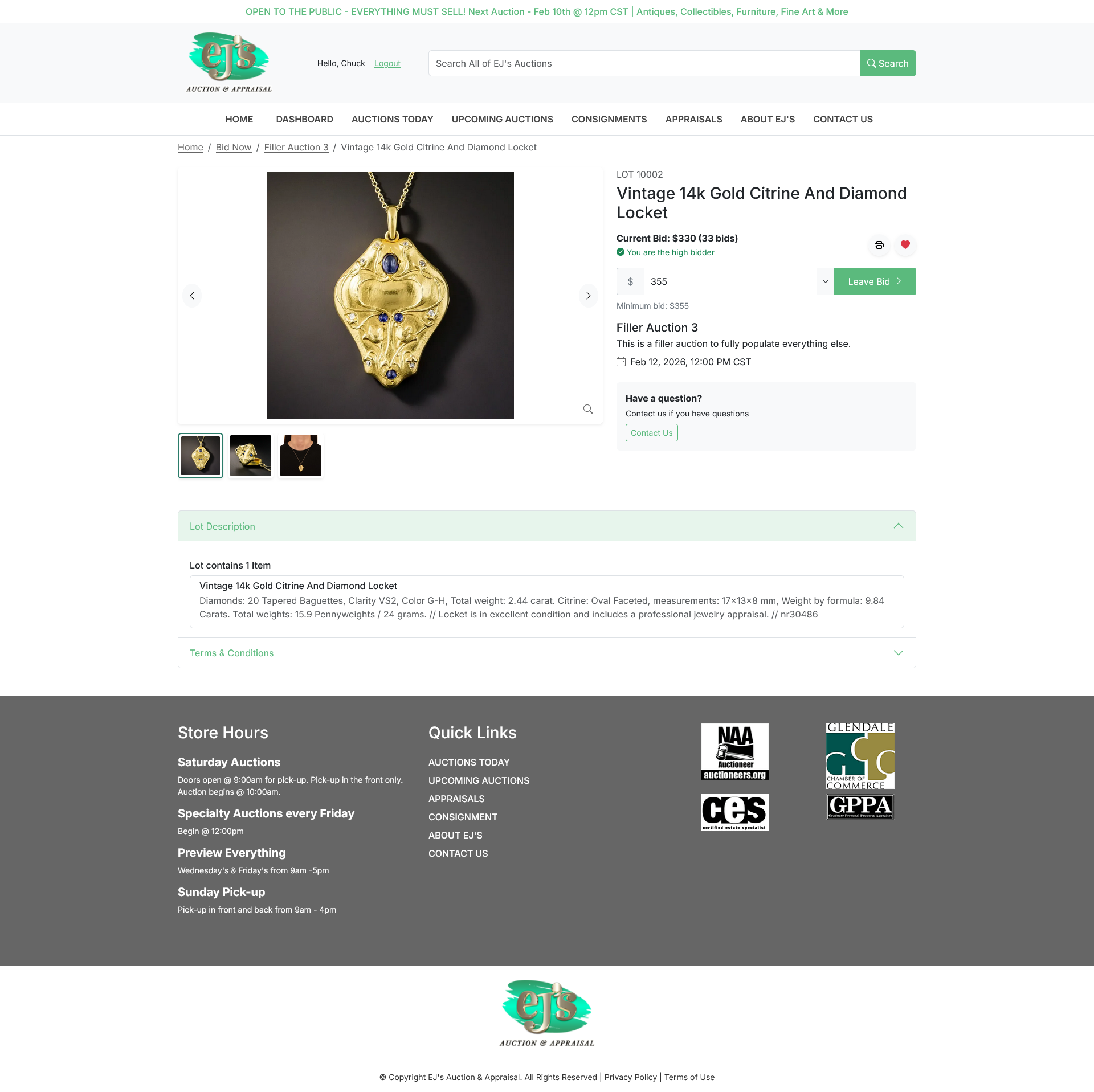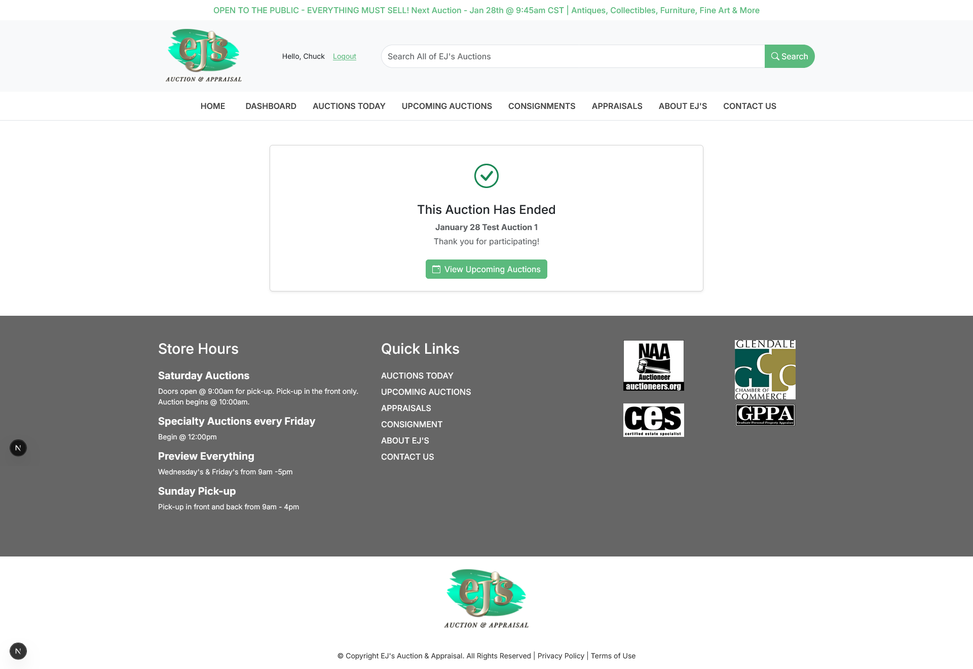 Bidders can place bids before or during the live event. Clerks manage live auctions, accepting both online and in‑house floor bids. The system includes an auction timer to support clerk workflow, and clerks can issue “Fair Warning” and other notifications to online bidders.