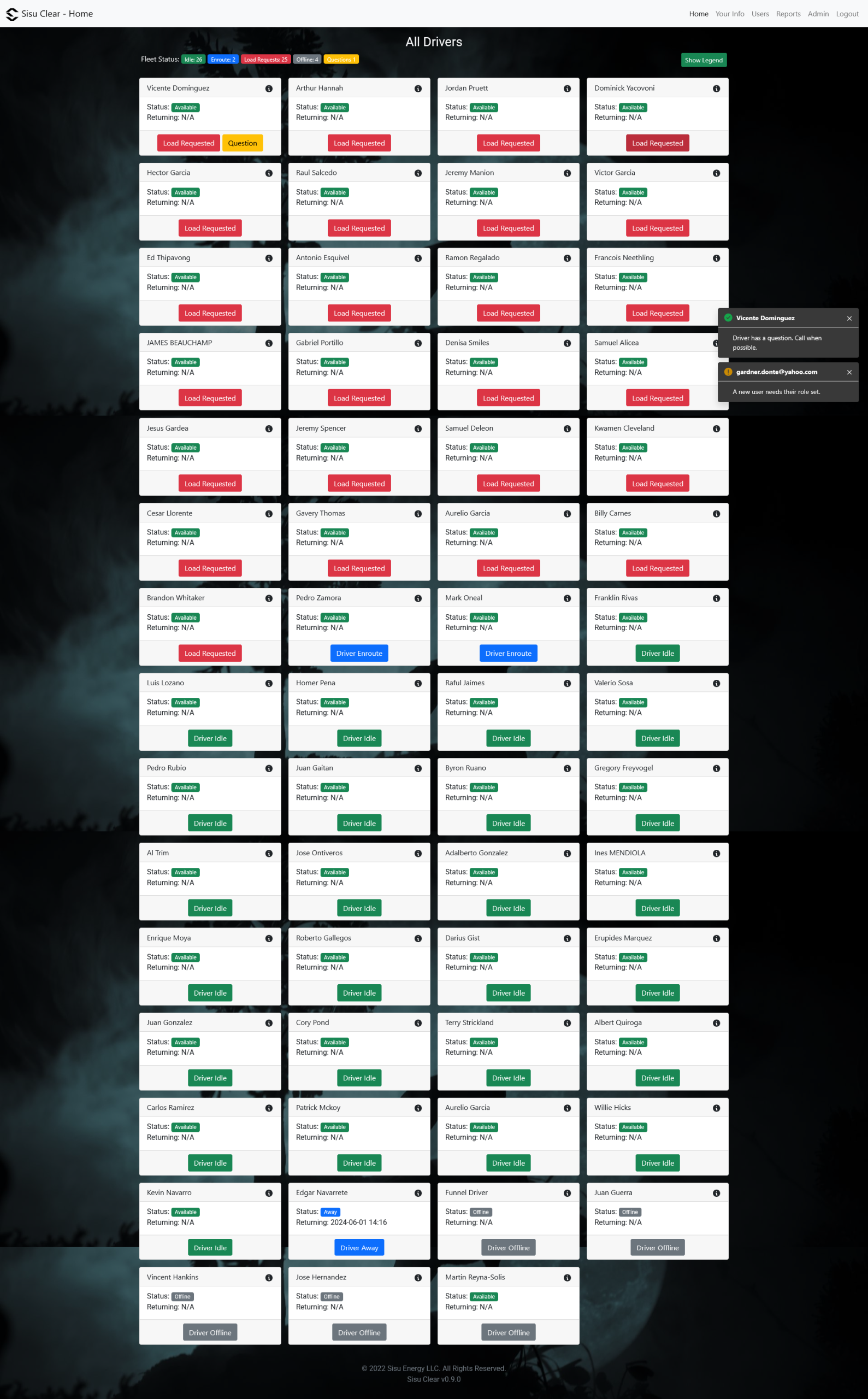 This application was developed to reduce dispatching call volume from drivers for an oil and gas logistics company. It enables drivers to communicate their availability, request loads, request assistance, and show status through an easy‑to‑use interface, without needing to call in.