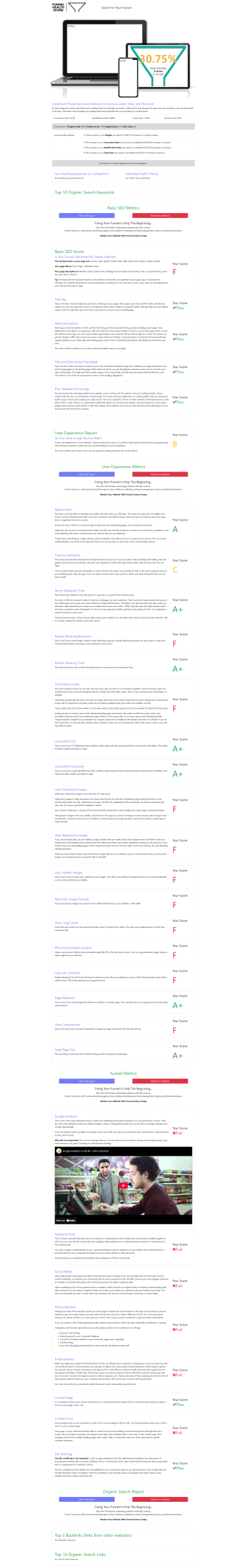 This single-page application was developed to quickly highlight the most common weaknesses in the most critical part of the sales funnel: the website.