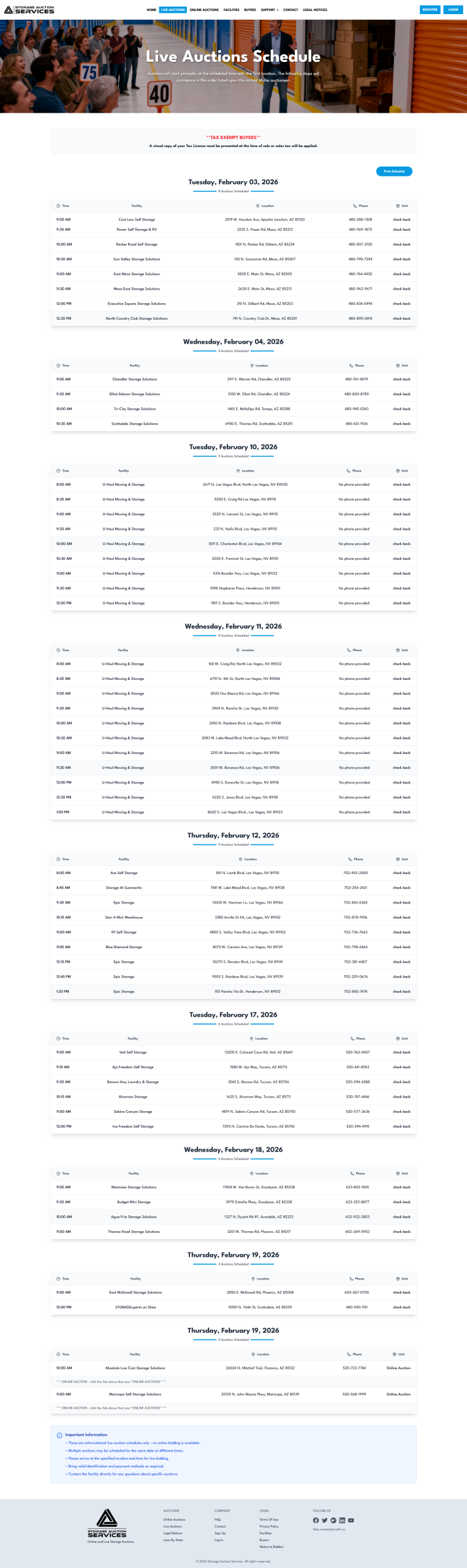 The new solution enables both the provider and its clients to post auctions for delinquent storage unit rentals, similar to those featured on recent television shows. The provider can also publish schedules for live, in-person auctions.